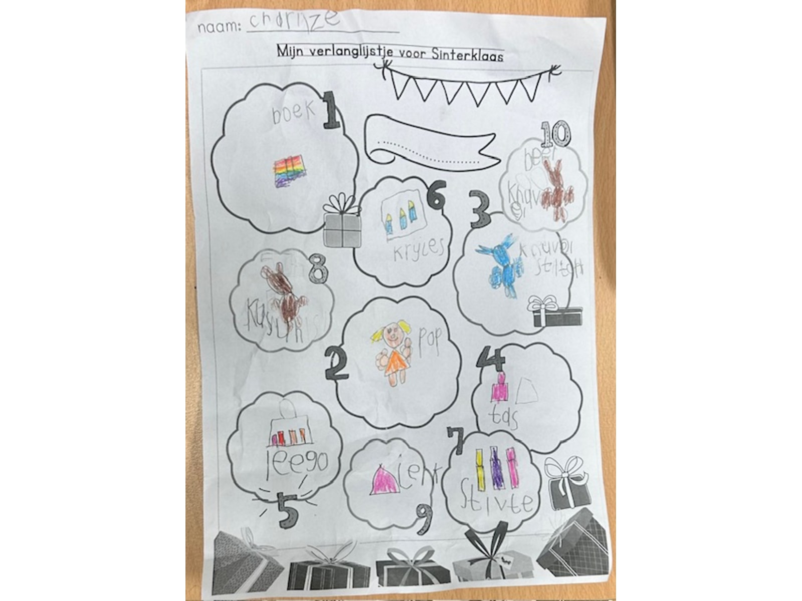 Wat gebeuren er toch allemaal vreemde dingen nu Sinterklaas met zijn pieten weer in Nederland is. We vonden een fiets in de aula. De fiets had een mooi zaderhoesje, maar ook een lege band. Wij hadden het vermoeden dat deze fiets van de pieten was. We hebben piet geholpen door zijn band op te pompen, zo kon hij weer met de fiets onze pakjes rondbrengen. Als bedankje hiervoor liet piet ons weten dat wij allemaal onze schoen mochten zetten op school.
